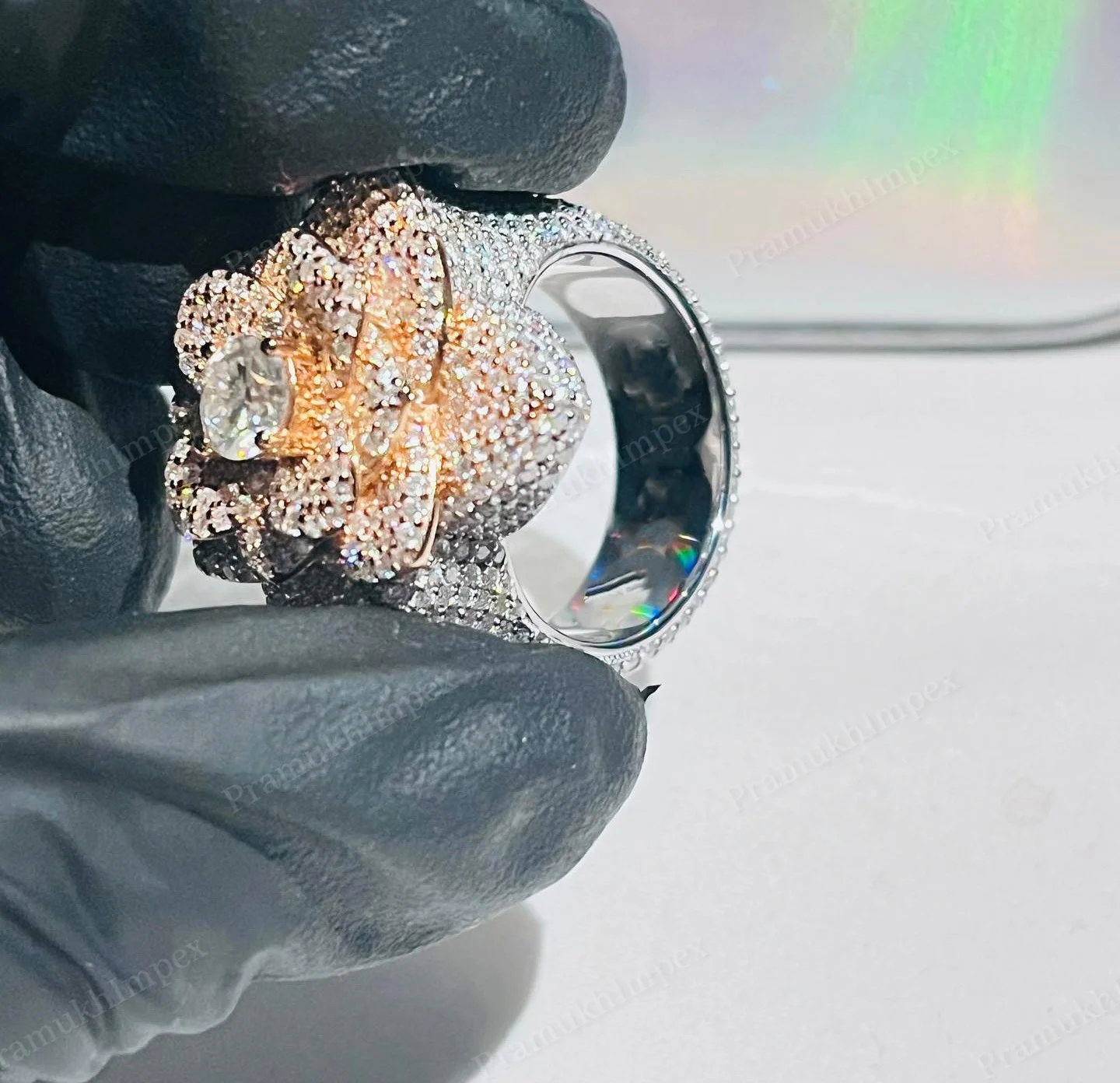 New Attractive Hip Hop Style Sterling Silver Gold Plated Moissanite Double Halo Customized Fine Rings Wholesale Prices